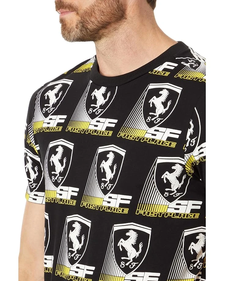 - Featuring an eye-catching print allover, the PUMA® Ferrari Race All Over Print Tee has a lightweight and breathable construction. The stylish T-shirt has a classic crew neckline, short sleeves, and a straight hemline.