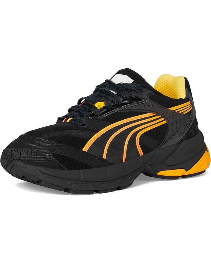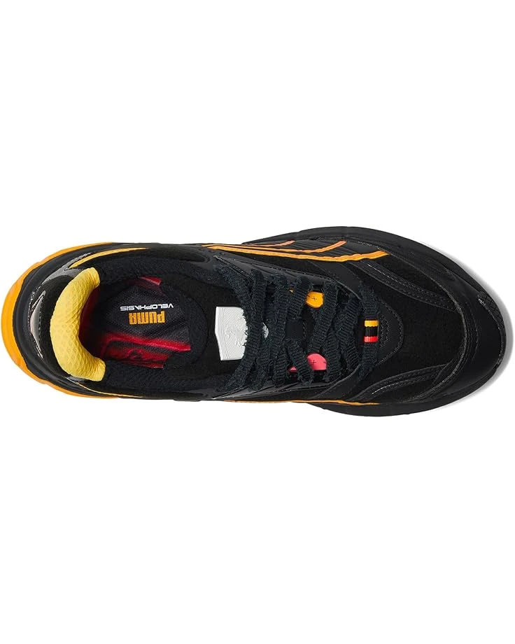 - The PUMA® Ferrari Velophasis Neon Sneaker was created by blended references from a similar design aesthetic to create something new and authentic. Its silhouette is a 2000s hybrid loosely inspired by PUMA’s heritage performance running range. This Ferrari Velophasis features an open mesh upper with synthetic leather formstrip with print & debossed lines, synthetic eyestay, and Ferrari details. The translucent molded TPU piece with open mesh tongue and PUMA Velophasis branding and the mesh heel cut out with heat cut cage & Velophasis branding on the lateral heel counter add authenticity. The round-toe, low-top sneakers feature a cotton lining, a removable ethylene vinyl acetate insole, and a molded sockliner.
