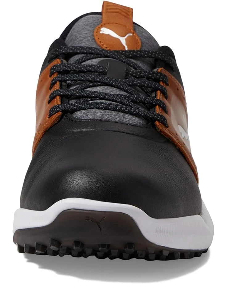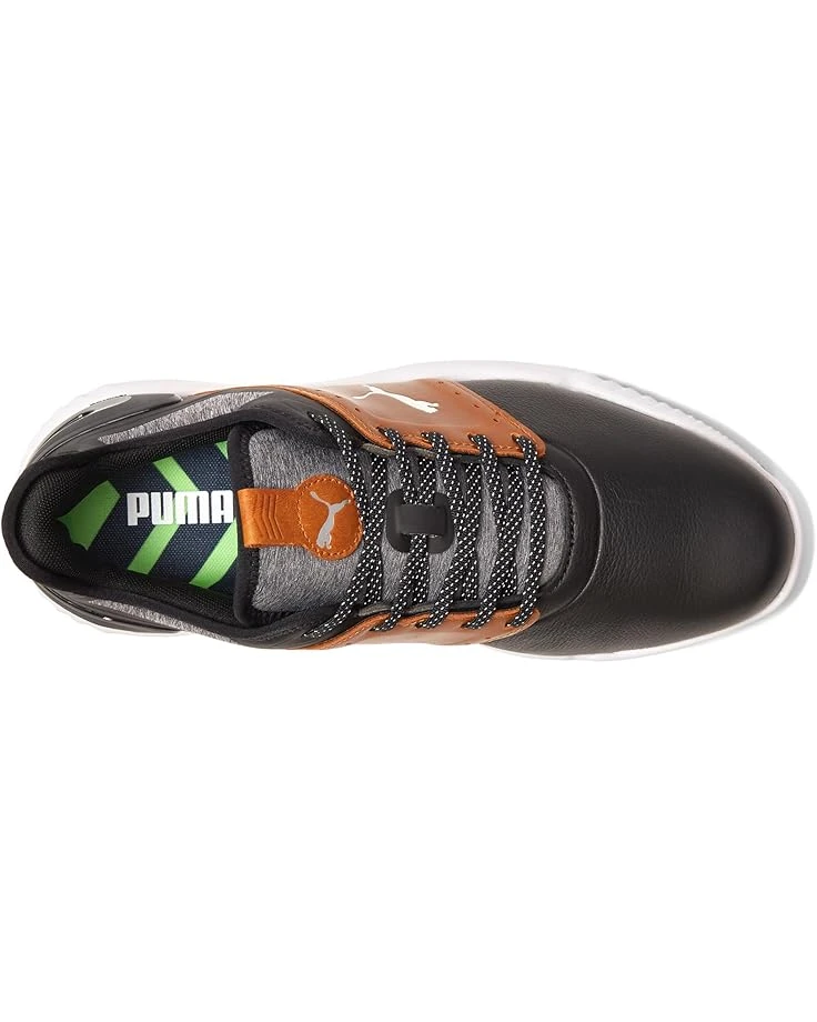 - The PUMA Golf® Ignite Elevate Crafted will raise your game to the next level providing you with incredible comfort and superb style. So tee-it-up with confidence no matter where the shoes may take you. The IGNITE Foam: Revolutionary and proprietary midsole foam provides energy return, responsive comfort, stable cushioning, and superior step-in comfort. The EXOShell – upper material with engineered mesh to provide structure, fused underneath TPU Film that provides support, and a 1-year waterproof warranty. The PWRCAGE- Super strong and lightweight thermoplastic rubber outsole provides excellent support and stability throughout your swing. The shoes come witha round toe design, laces for adjustability, and tongue pull tab for convenience.