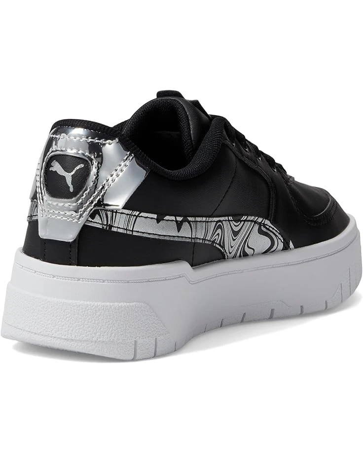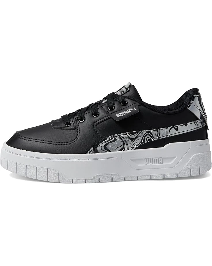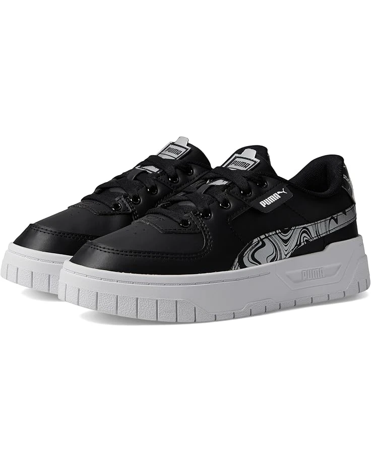 - The PUMA® Kids Cali Dream Golden Marble Shoes will be the perfect companion for casual day outs or usual outdoor sports. Featuring a leather and suede upper, textile lining, and removable footbed, this pair of athletic shoes is designed to offer both style and functionality. The shoes comes with a round toe design and lace-up closure for a convenient donning and doffing.