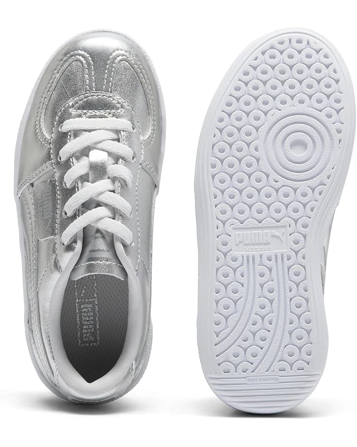 - Ideal for young sneakerheads and terrace fashion mavens alike, the PUMA® Kids Palermo Chrome. Straight from the archives, this classic terrace shoe boasts a signature T-toe construction and bold color-blocking, revamped for today’s trendsetters. Crafted with an EVA upper and polyester lining, it promises lightweight comfort and breathability with every step. The rubber insole ensures cushioned support, while the EVA outsole offers durability and grip for all-day play. Complete with a lace-up closure and round toe, it blends heritage football style with contemporary flair.