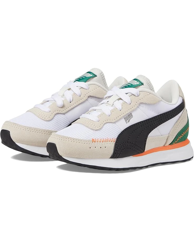 - Start your journey of style with PUMA® Kids Road Rider − a fresh spin on the iconic 1970s running sneakers. Elevate every stride with its retro upper, blending nostalgia with modern flair. The sculpted EVA midsole ensures comfort, and the regular fit makes these kicks perfect for young adventurers, seamlessly merging fashion and function.