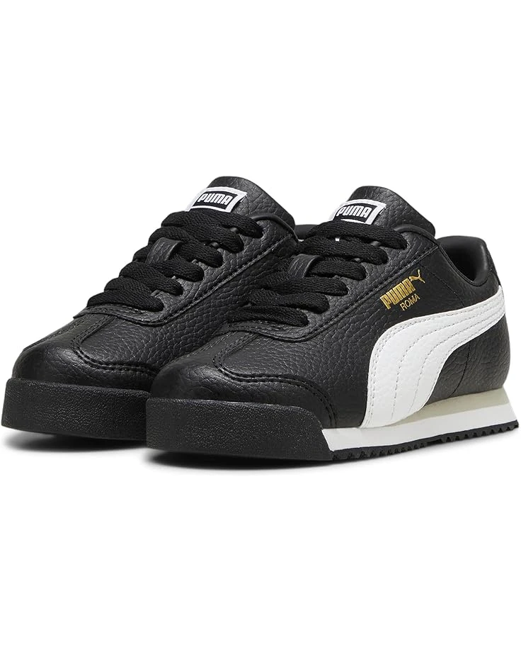 - From the Puma archives in 1968, the PUMA® Kids Roma shoes are equipped with comfort-enhancing features such as a thick padded tongue and collar and orthopedic arch supports that provide all-day comfort. These sneakers are designed with a suede leather upper with suede leather overlays on the toe and vamp, leather Formstrip, and embossed suede underlay on the heel. The nylon lining and EVA footbed add to their comfort. Perfect to pair with different outfits, these leather sneakers make a great addition to your kid’s footwear collection.