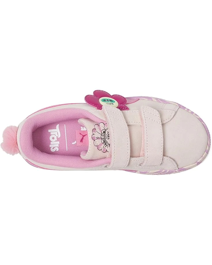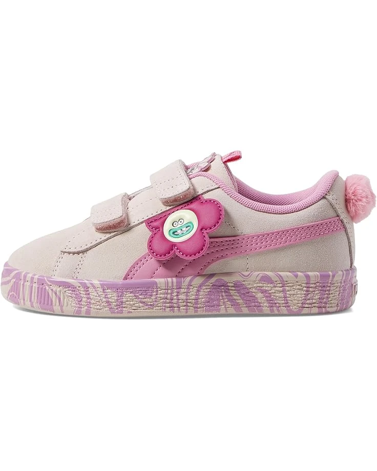 - Give your little ones’ feet the soft touch of comfort with the PUMA® Kids Suede Sneakers, beautifully designed with flower motifs. This season’s designs are inspired by the sweet universe of the Trolls – the colorful characters, vibrant environments, and positive energy. The Suede Classic XXI brings back PUMA’s most iconic silhouette with a full suede upper, polyester lining, rubber insole, and several quality improvements compared to previous seasons. The double hook-and-loop tab allows easy on/off and the tongue pull tab allows easy donning & doffing.