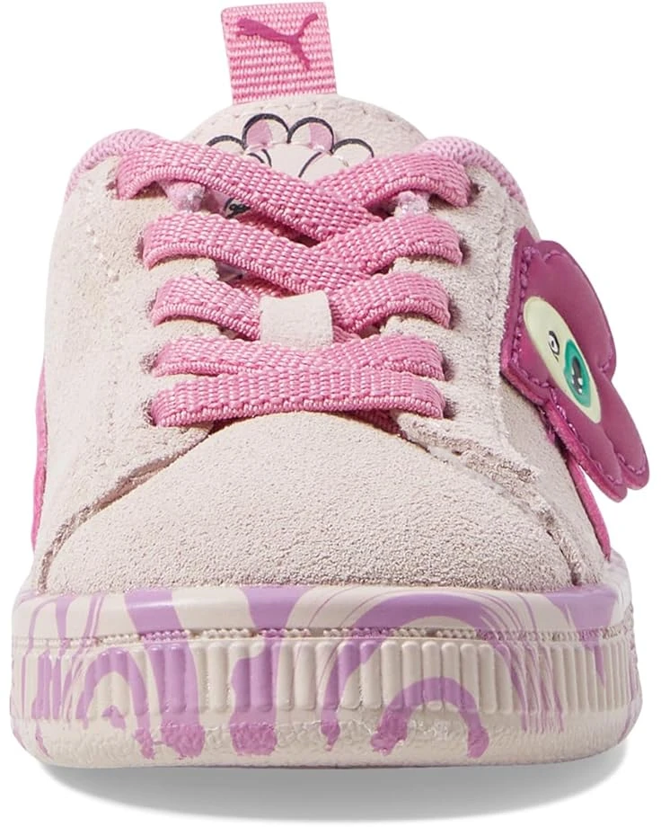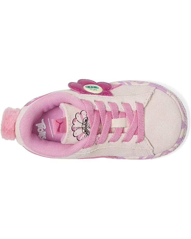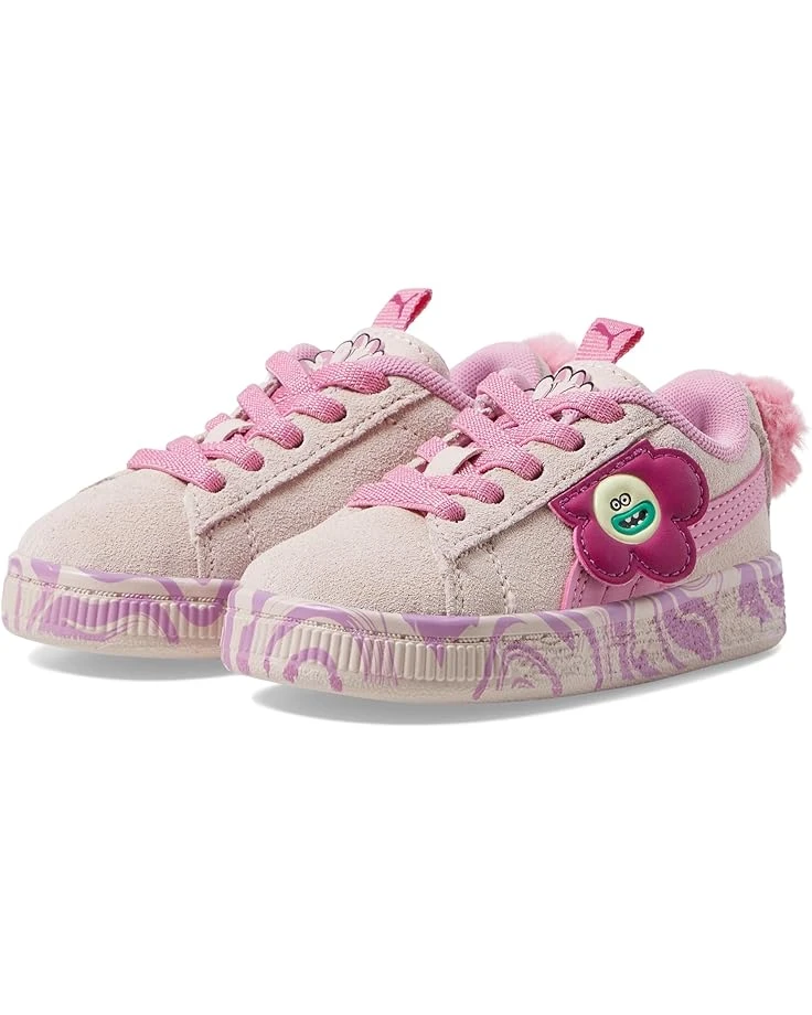 - Give your little ones’ feet a luxurious touch of comfort with the PUMA® Kids Suede Sneakers, beautifully designed with flower motifs. This season’s designs are inspired by the sweet universe of the Trolls – the colorful characters, vibrant environments, and positive energy. The Suede Classic XXI brings back PUMA’s most iconic silhouette with a full suede upper, polyester lining, rubber insole, and several quality improvements compared to previous seasons. The lace-up closure is designed to provide a secured fit and the tongue pull tab allows easy donning & doffing.