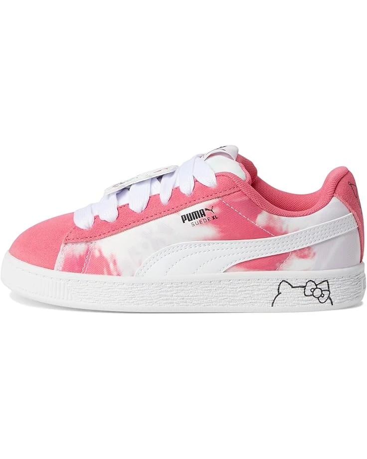- This fresh take on the classic suede draws inspiration from PUMA’s heritage within breakdancing and its influence on modern streetwear. The PUMA® Kids Suede Xl Hello Kitty And Friends The Suede’s Iconic DNA, but gives it a twist with an exaggerated padded collar and tongue, plus a chunkier sole. In this New PUMA X Hello Kitty And Friends Collection, Hello Kitty And Her Friends roller skate along the beautiful coast of Los Angeles. The collection is inspired by beach vibes, with a watercolor effect inspired by La Sunsets. Targeting pre-schoolers, this girly collection features skate-inspired vibes, trendy silhouettes, and new materials, for a unique and fun approach. The low-top sneakers feature suede upper. polyester lining, and rubber insole.