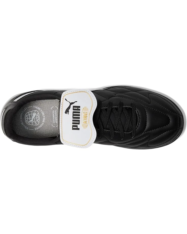 - Gift yourself the PUMA® KING Top TT, a contemporary update on a classic design. The K-leather upper ensures unparalleled comfort, while the synthetic lining and fold-over tongue add modern flair. With an EVA midsole and low-profile multi-studded rubber outsole, experience superior cushioning and grip. The iconic PUMA No. 1 Logo on the tongue and cat Logo on the heel, along with the contrasting Formstrip, honor the KING legacy.