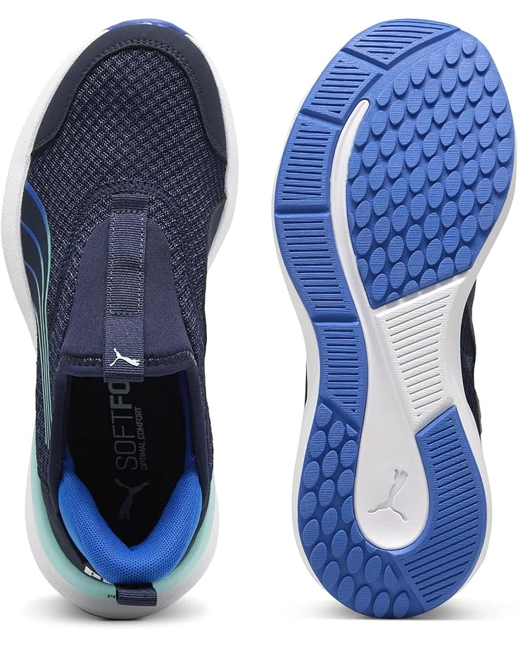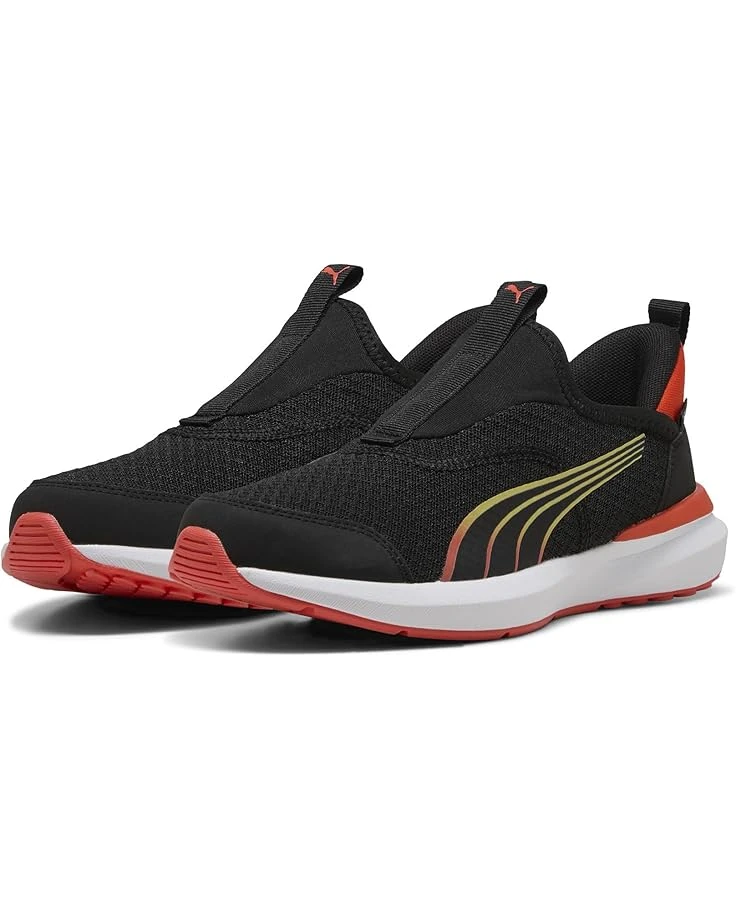- Pick up the pace wearing the PUMA® Kruz Sliptech Shoes. The running shoes are designed specifically for kids’ performance needs with a slip-on style ethylene vinyl acetate upper and ethylene vinyl acetate outsole for durability & better traction. PUMA’s new Sliptech technology allows you to slip shoes on and off without the use of your hands. While the foam insole and comfortable midsole ensure all-day cushioning and support, the ankle and heel pull tabs allow easy donning/doffing.