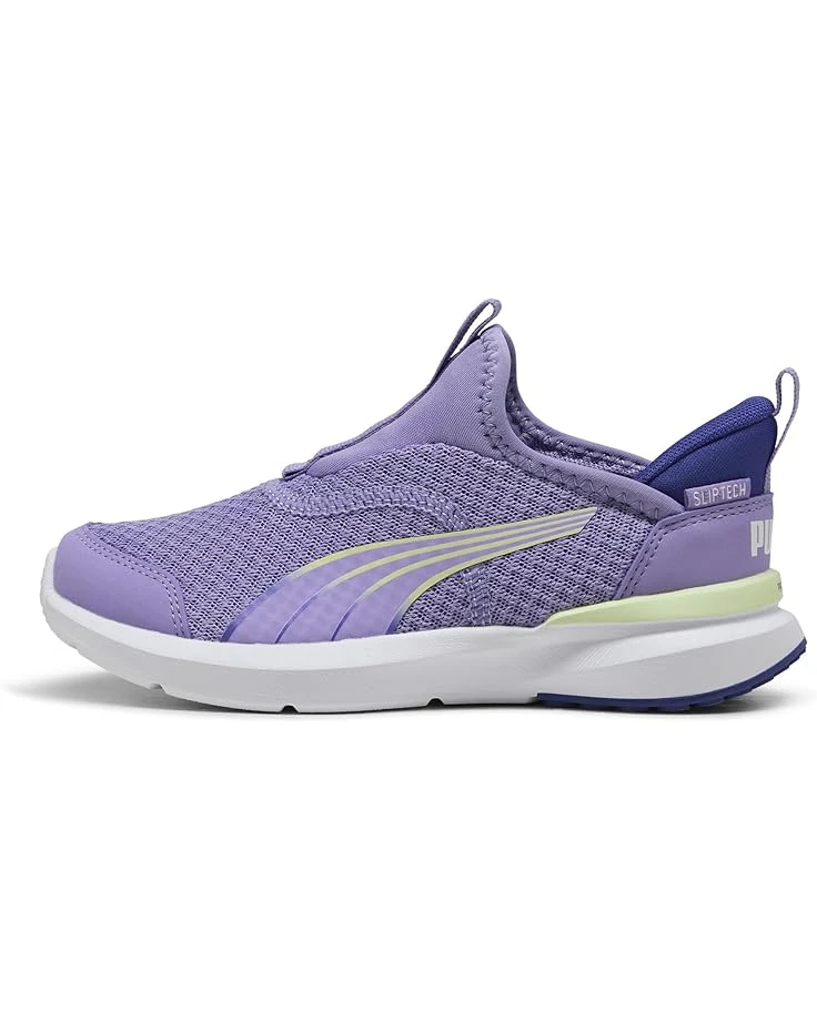 - Let your kid pick up the pace wearing the PUMA® Kruz Sliptech shoes. These running shoes are designed specifically for kids’ performance needs, durability, and traction. The split EVA upper of these kid’s shoes features a heel enforcement for easy step-in style while the Sliptech technology allows your kid to slip shoes on and off without the use of their hands. These slip-on sneakers have a comfy midsole for all-day cushioning and support. The foam insole and textile lining offer added comfort. Lightweight and comfortable, these sneakers are perfect for your kid’s everyday wear.
