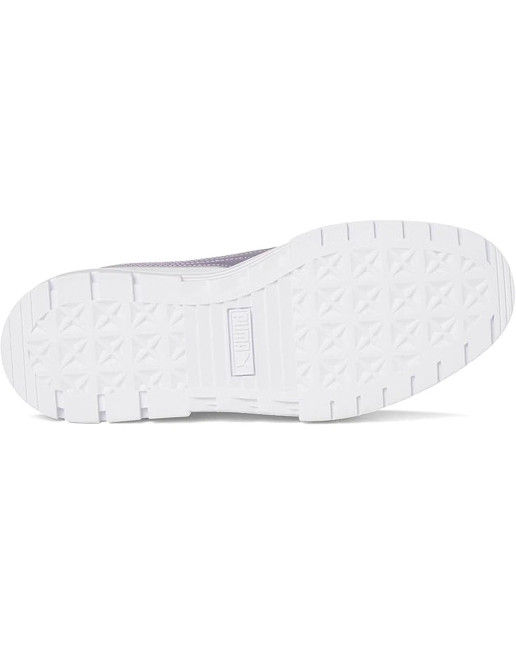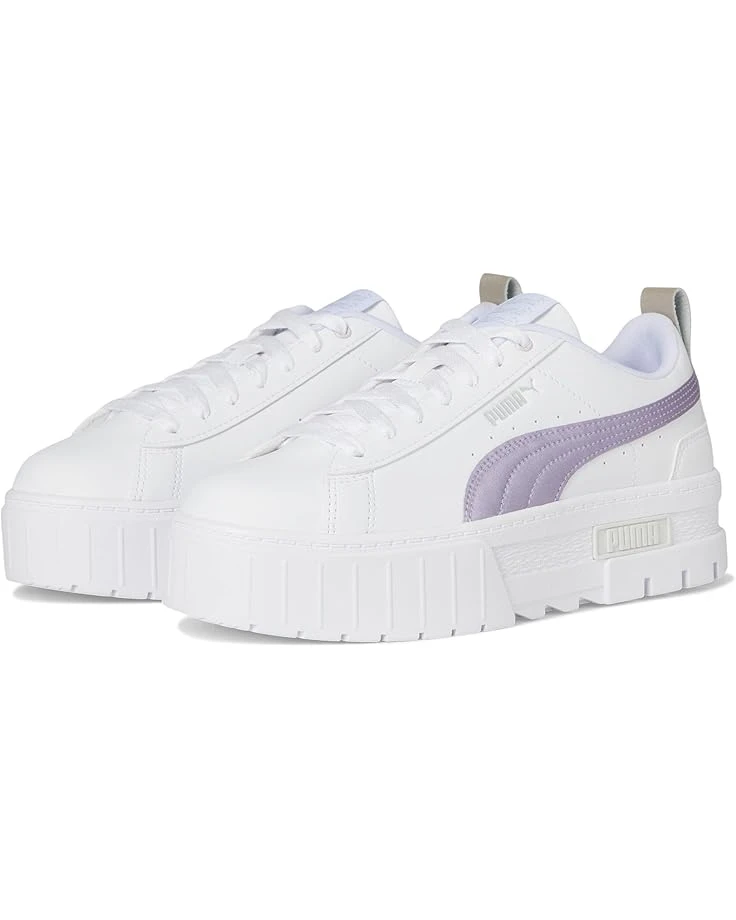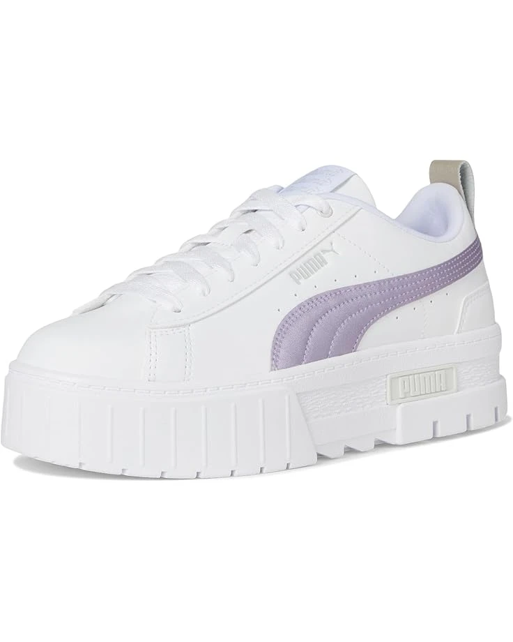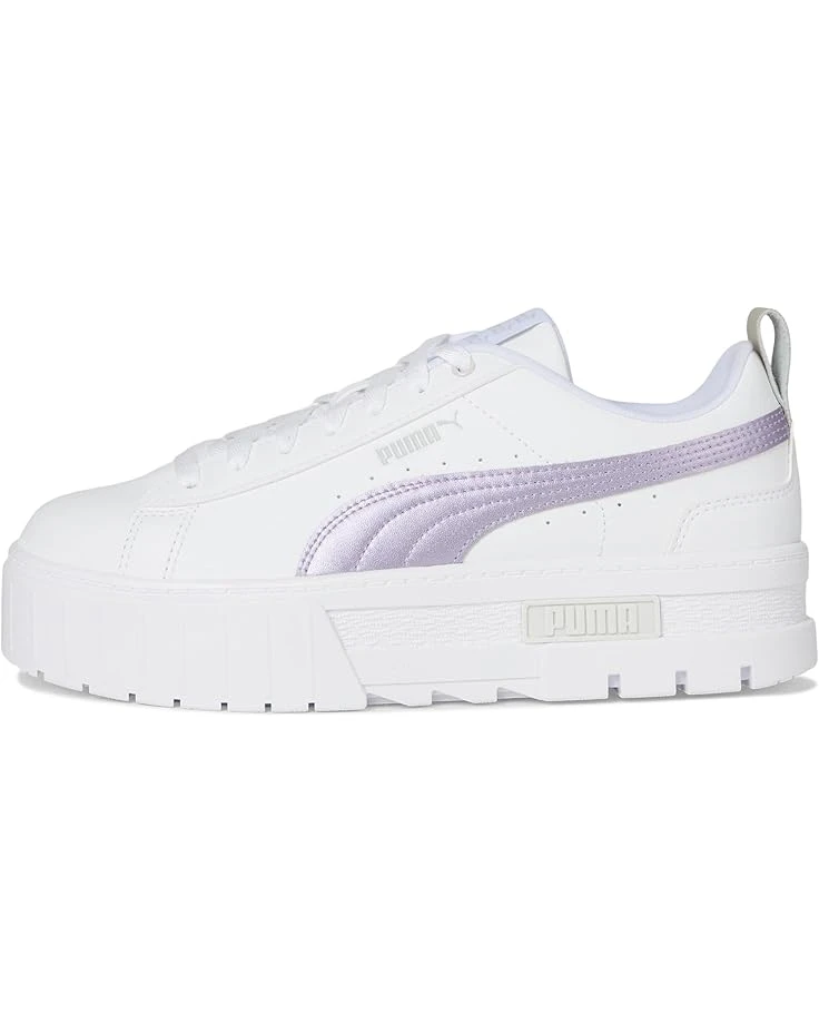 - Get ready to find your style in PUMA® Mayze Glow-Up. We made this one for the hype girls, the street enthusiasts, the trend mavens. This stand-out silhouette takes design inspiration straight from the streets, with a stacked sole and contrasting rubber tooling for an edgy, layered look. This ‘Glow-Up’ execution features a synthetic leather base with a metallic leather formstrip and heel overlay. The low-top shoes have faux leather upper, polyester lining, and rubber insole.