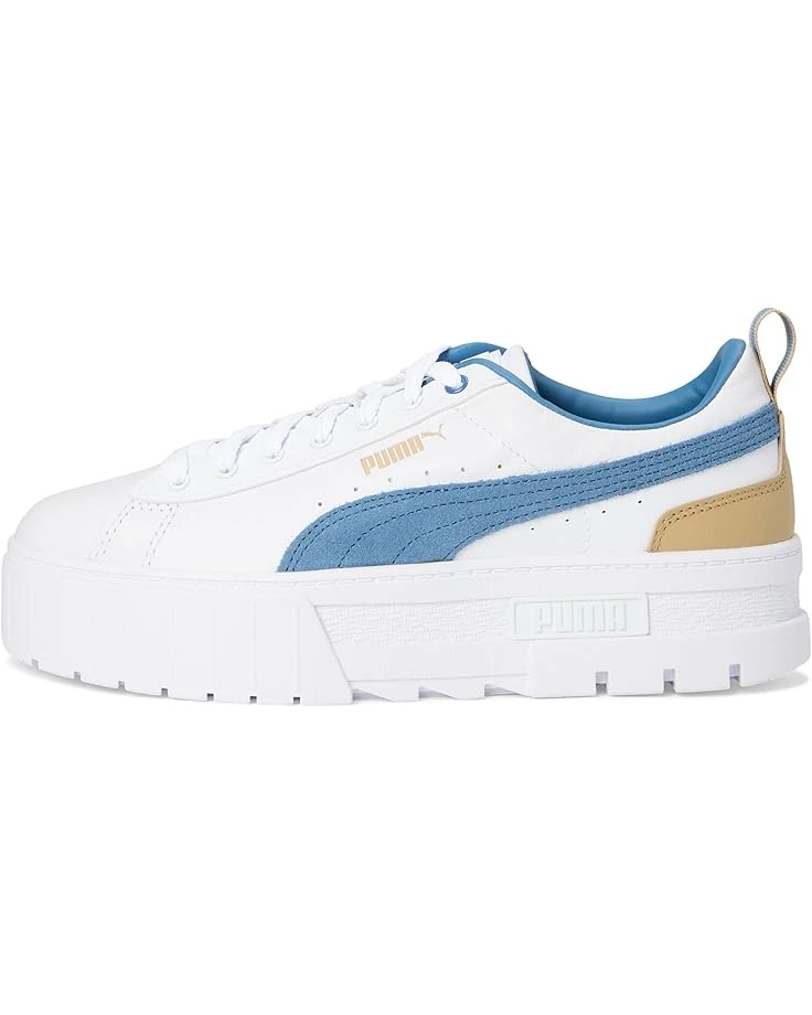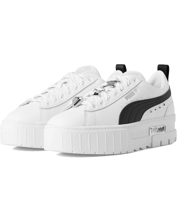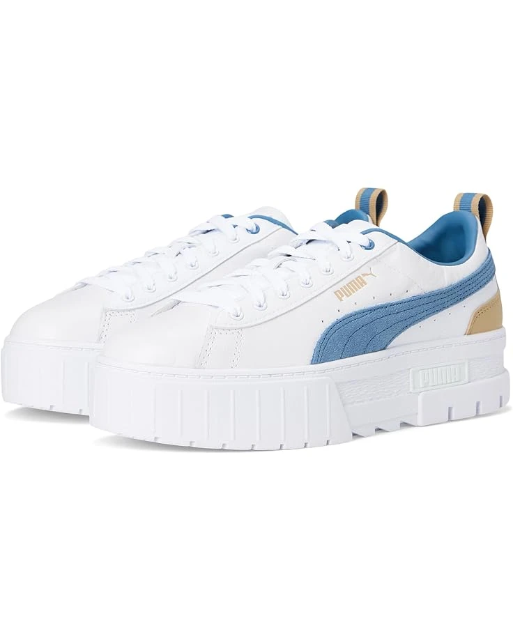 - Get ready to find your style in the PUMA® Mayze Shoes. They are made for the hype girls, the street enthusiasts, and the trend mavens. These platform shoes take design inspiration straight from the streets, with contrasting three-piece rubber tooling at the midsole along with textured toe and heel details for an edgy, layered look. The sleek PUMA Formstrip on the lateral and medial sides, with iconic PUMA branding on the tongue and heel offers a stylish appeal. These lace-up shoes are made of a leather upper, rubber insole, and polyester lining. Make your style statement wearing these leather sneakers.