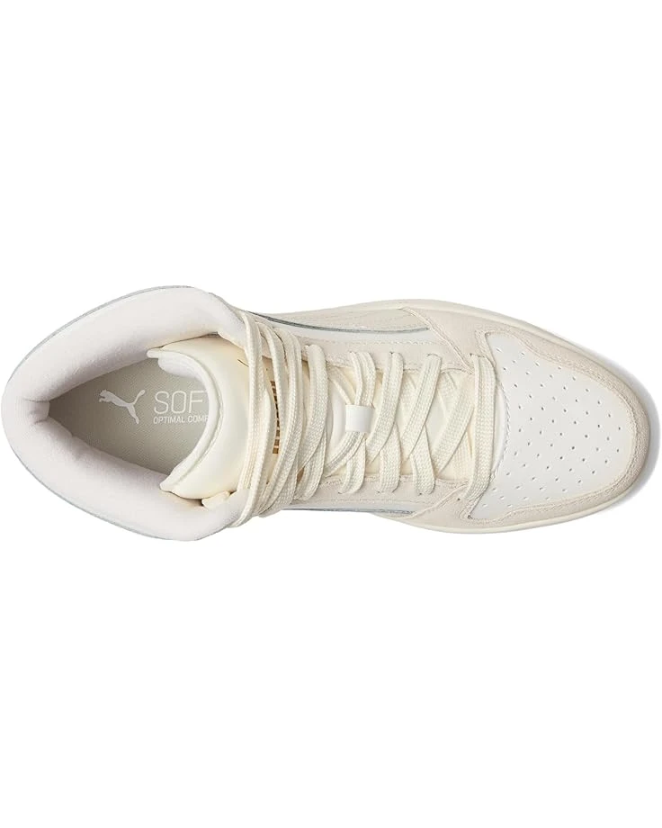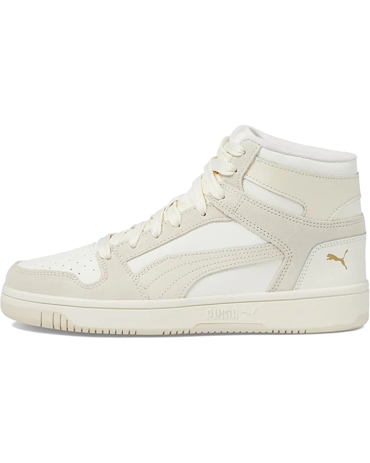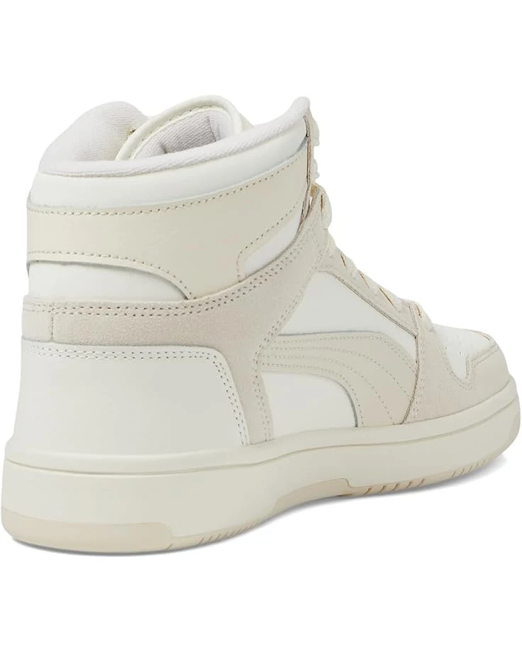- Designed to accompany you from morning to night, the PUMA® Rebound Layup Marshmallow sneakers offer superior comfort. The shoes feature a round toe and lace-up closure on a high-top design. It has a synthetic leather upper, textile lining, and comfortable insole. A signature cat on the back quarter.