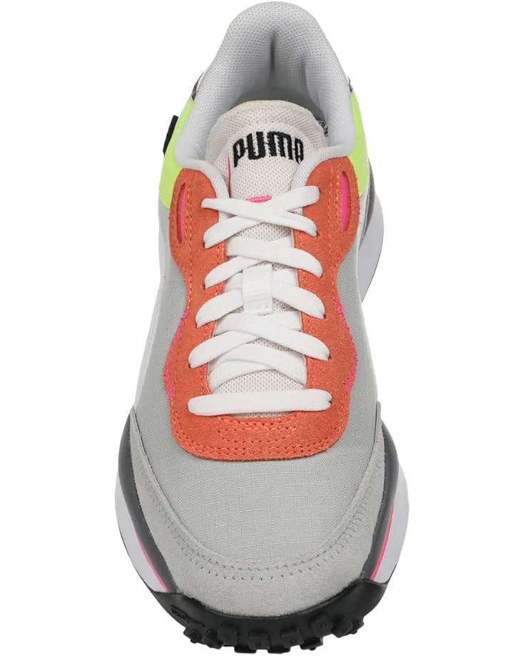 - The Puma® Rider 020 Play On features a textile upper with mesh as well as an extra chunky ethylene vinyl acetate midsole. With Puma formstrip on the medial and lateral sides, this sneaker is finished off with an extra grippy rubber outsole and Puma branding hits on the tongue and heel.