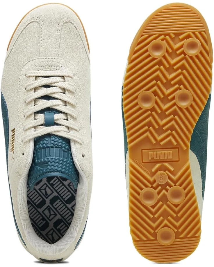 - Classic PUMA Roma gold or silver foil detail on lateral side.