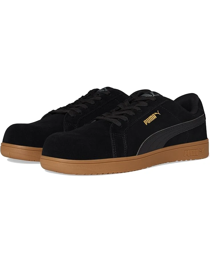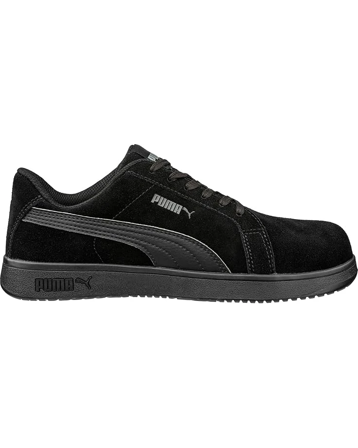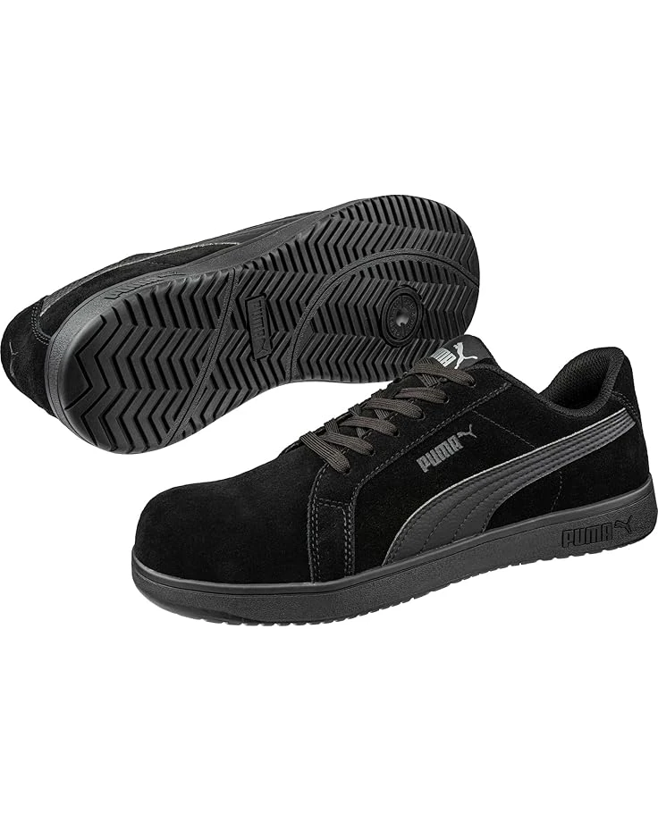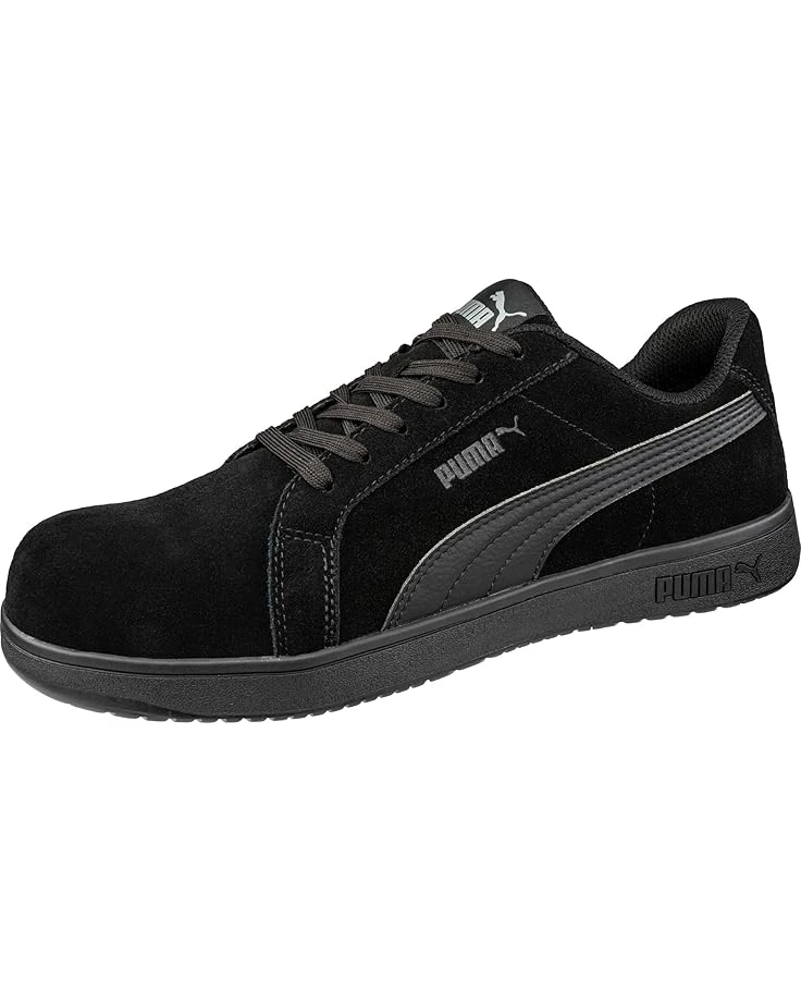 - Classic meets safety with the PUMA® Safety Iconic Suede Low EH Sneakers. This low-top shoes is the hottest look in the safety footwear industry and is made with a classic suede upper, which is durable and takes no break-in. The rubber outsole is perfect for slip, oil, and abrasion resistance. The outsole is filled with a lightweight EVA cushion material in the forefoot and heel to protect from impact and aborb the shock of your job surface. The breathActive functional polyester lining offers moisture wicking and dry feet. All these features are complemented by the exclusive removable EVERCUSHION® RELIEF footbed that provides all day comfort on concrete and other hard surfaces.