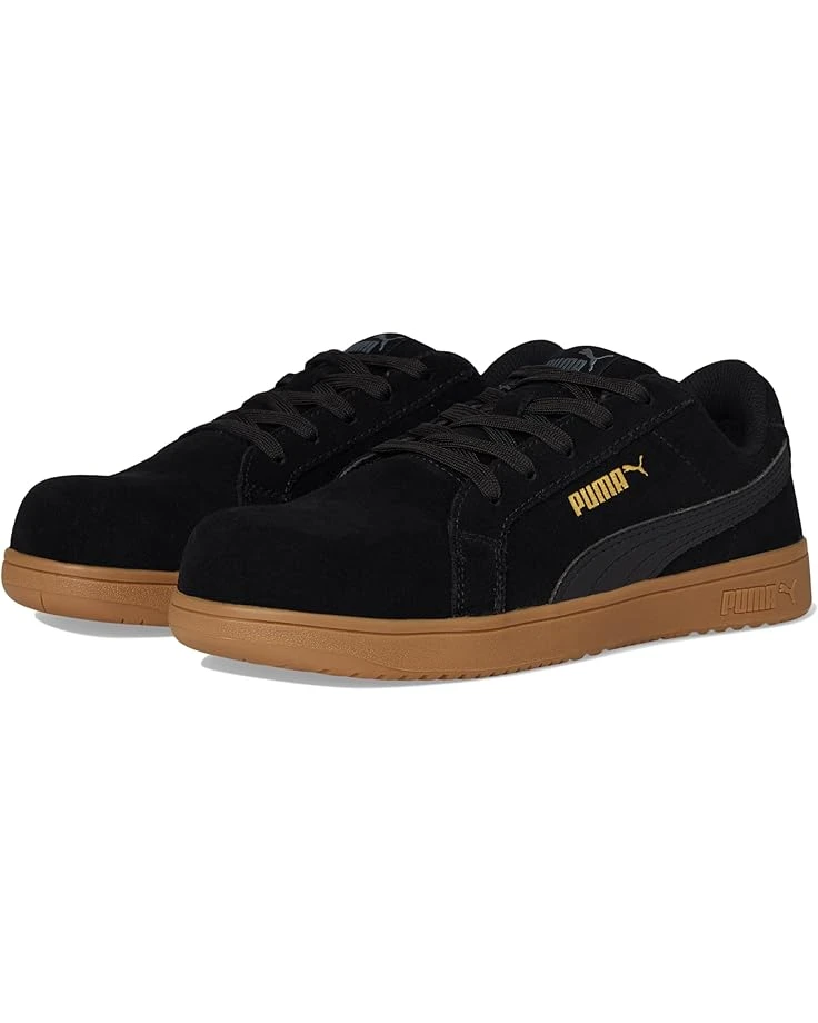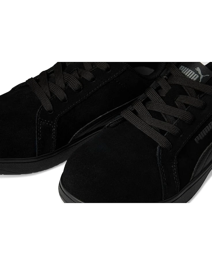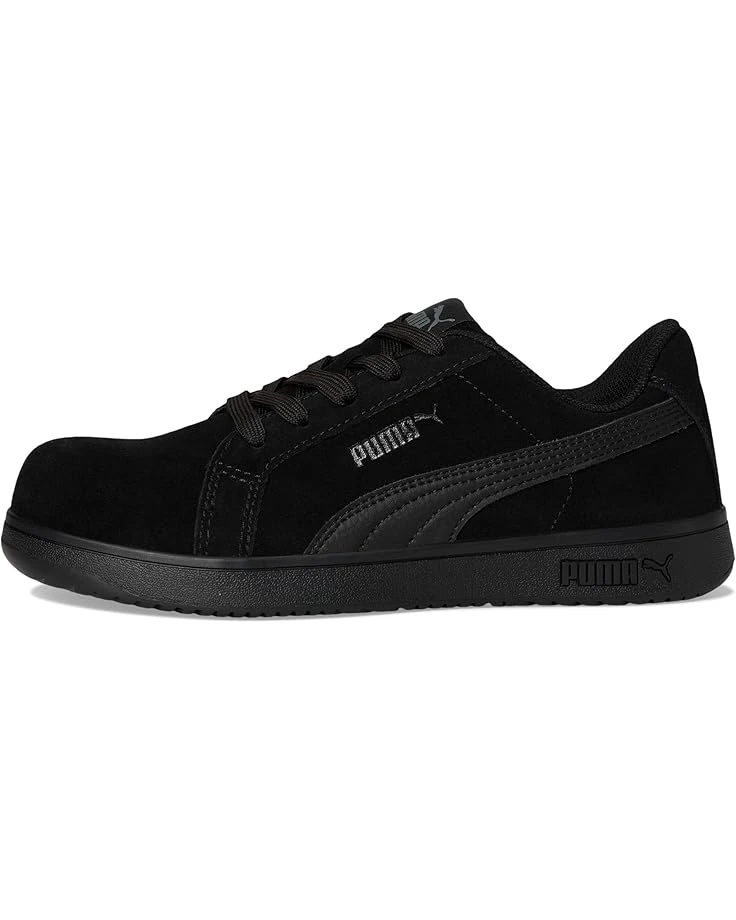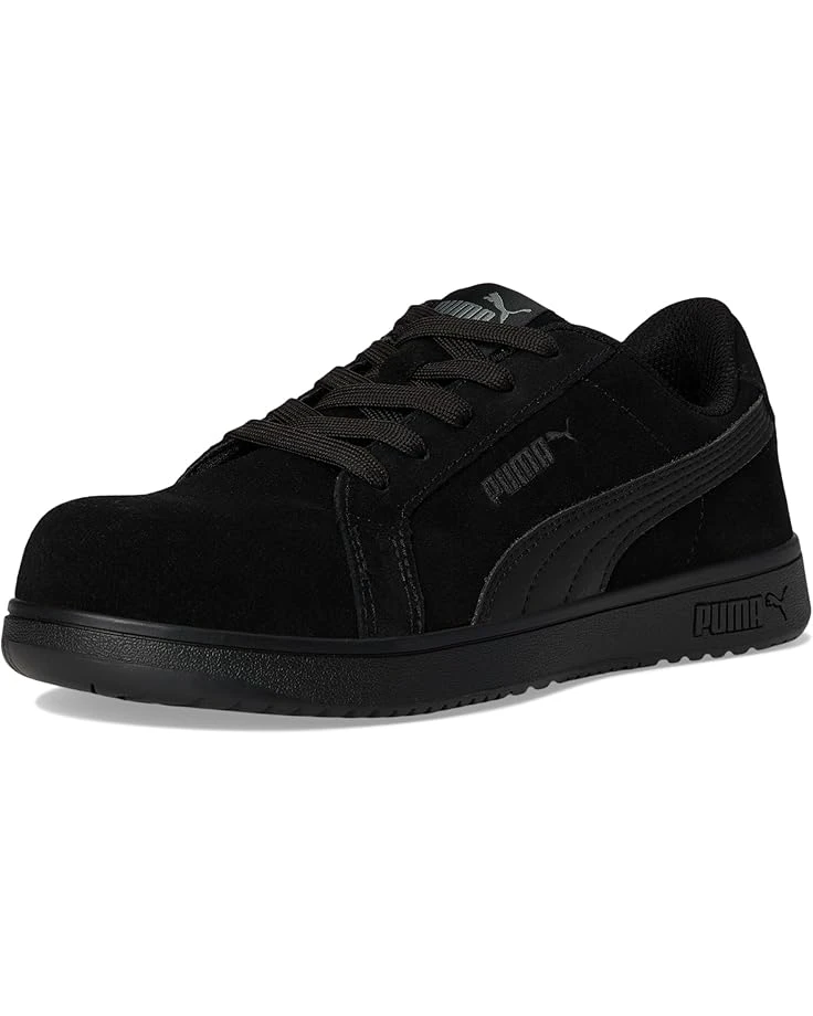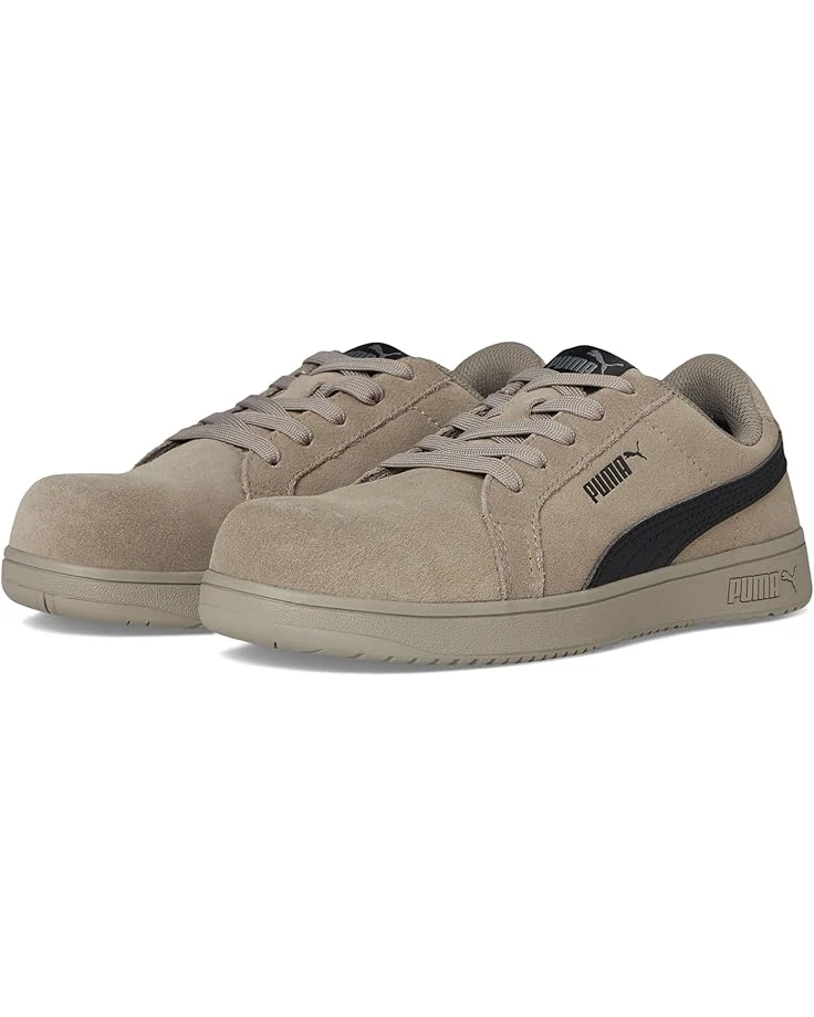 - Classic style, unmatched safety – meet the PUMA® Safety Iconic Suede Low EH. Featuring a durable suede upper and moisture-wicking BreathActive lining, your feet stay dry and comfortable all day. The composite toe offers lightweight protection, while the slip, oil, and abrasion-resistant rubber outsole can withstand heat up to 572ºF. Shock-absorbing EVA idCELL elements cushion every step, and the removable EVERCUSHION® RELIEF footbed supports you on hard surfaces like concrete.