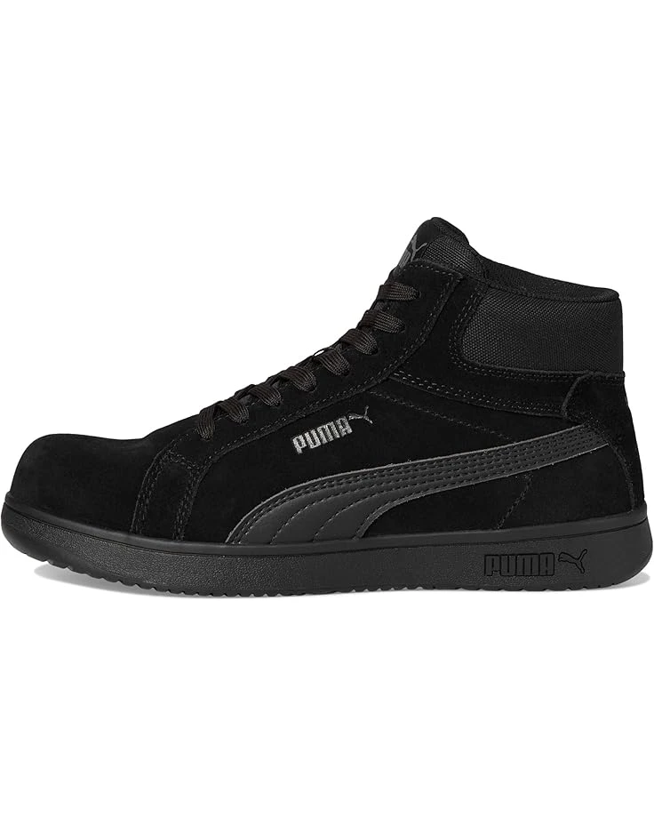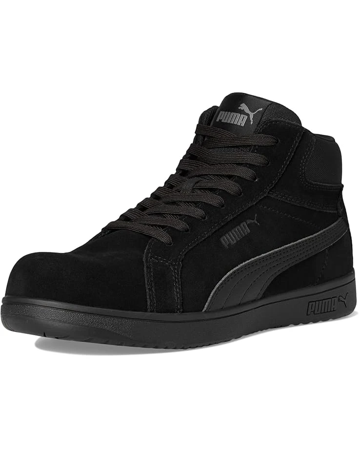 - The PUMA® Safety Iconic Suede Mid EH is the hottest look in the safety footwear industry. It is made with classic suede upper, which is durable and takes no break-in. The rubber outsole is perfect for slip, oil, and abrasion resistance. The outsole is filled with a lightweight EVA cushion material in the forefoot and heel to protect from impact and absorb the shock of your job surface. All these features are complemented by the exclusive EVERCUSHION® RELIEF footbed that provides all day comfort on concrete and other hard surfaces.