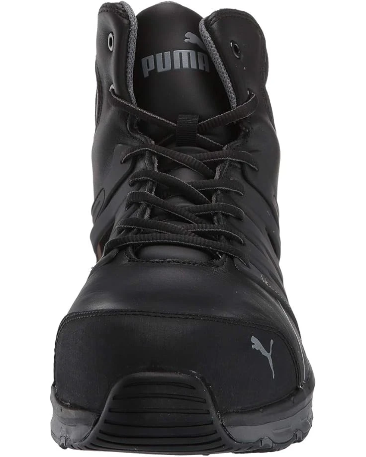 - The superior durability, reliable stability, and underfoot support of the PUMA® Velocity Mid Composite Toe SD work shoes will keep you safe in hazardous work areas. These lace-up work shoes also have a 100% non-metallic construction for improved flexibility within the shoe.