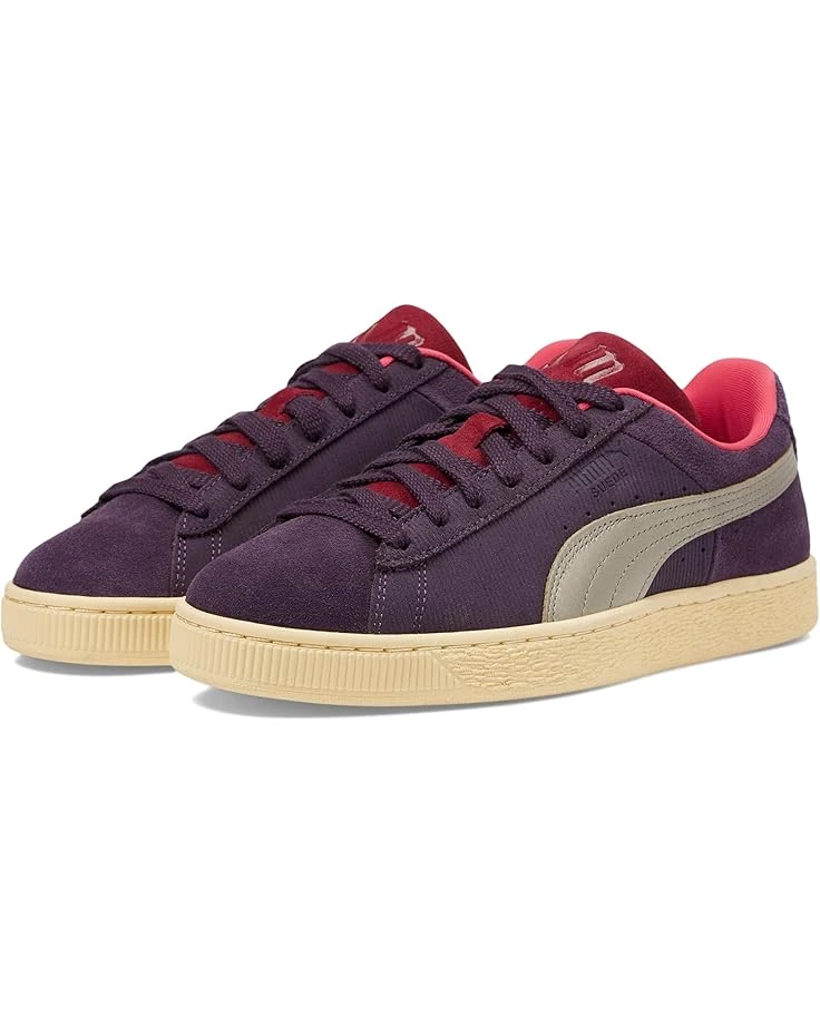 - Take style and functionality to a whole new level wearing PUMA® Suede Play.Paris. Sneakers, crafted in a sleek silhouette with round toe shape. The low-top sneakers come with a suede leather upper that is responsibly manufactured via the Leather Working Group, mesh lining, and mesh sockliner with screen printed PUMA® branding. These are designed with a leather formstrip, lace-up closure, debossed & printed PUMA® and suede branding on quarter panel, suede leather tongue with debossed & glossy screen printed PUMA® branding, and metallic AUX cord lacetip