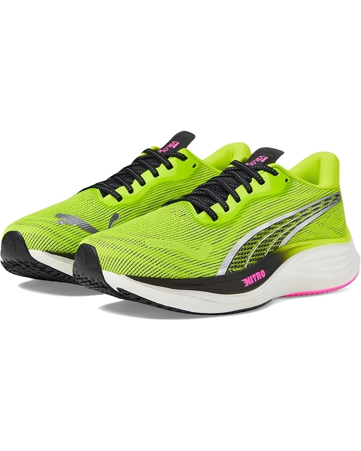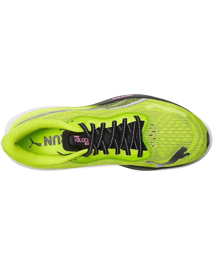 - Enjoy an unbeatable speed and comfort by wearing PUMA® Velocity Nitro 3 Psychedelic Rush shoes. They feature rounded protective toes, lace closure, and padded collar for added support. It is crafted from a textile upper, lining and insole.